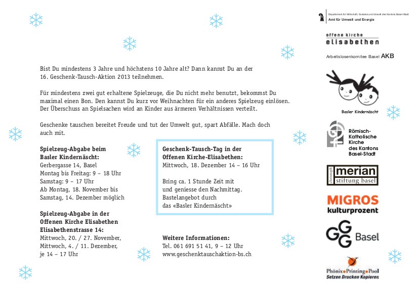 Die Geschenk Tausch Aktion 2013Hier ein Auszug der Berichterstattung zur Aktion 2013 ..in der Tageswoche